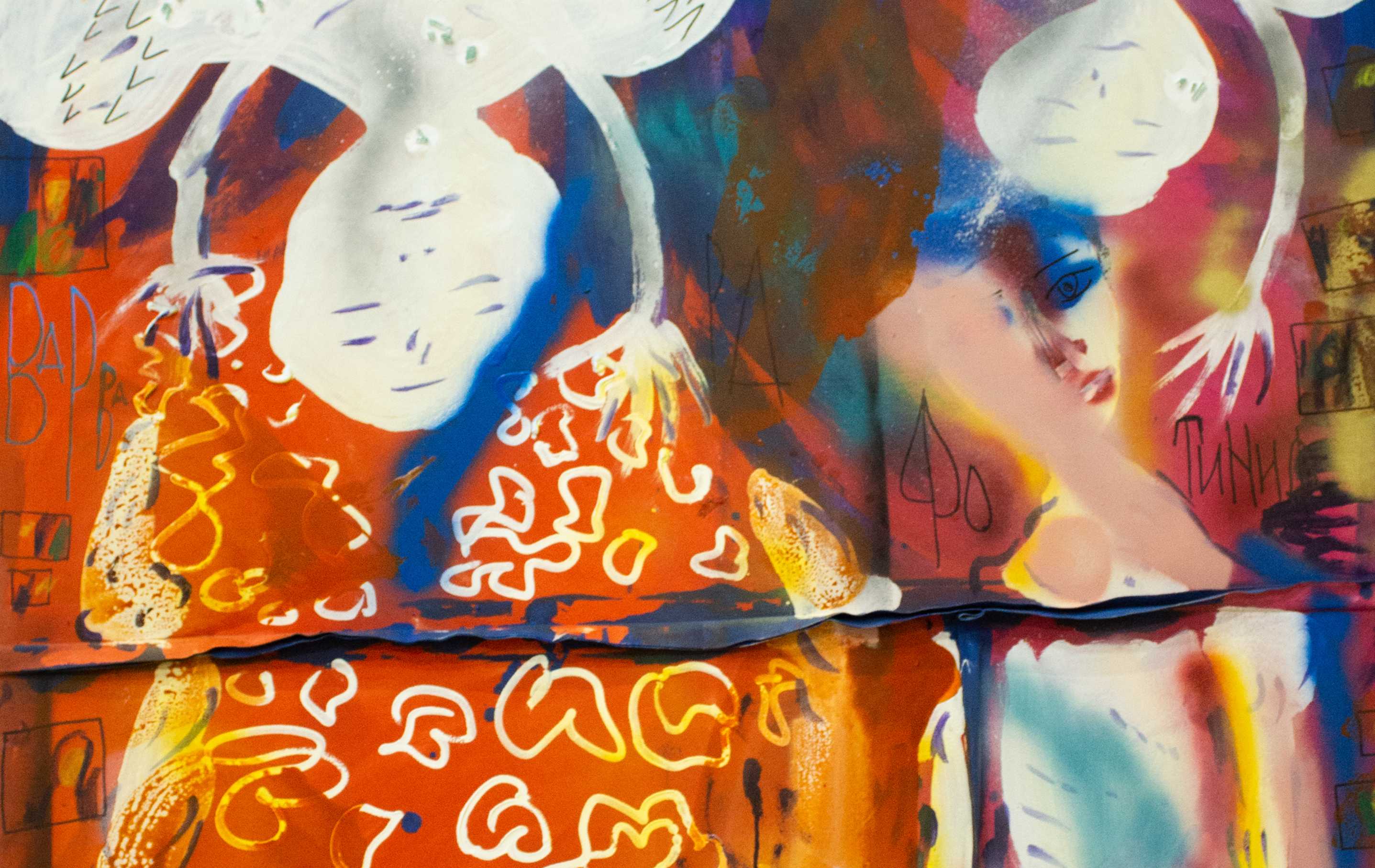 Ирония и гротеск, как олицетворение его живописного метода, создают театральную феерию сложную в своей многослойности и поставленную в сжатые рамки холста.