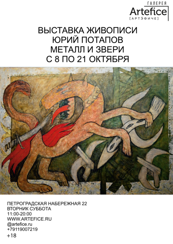 Выставка Юрия Потапова «Металл и звери» в галерее «Artefice» – это не просто показ картин. Это масштабное исследование того, как самый древний образ в истории искусства – образ Зверя – прошел путь от сакрального тотема до кибернетического организма, не утратив своей архетипической мощи.
